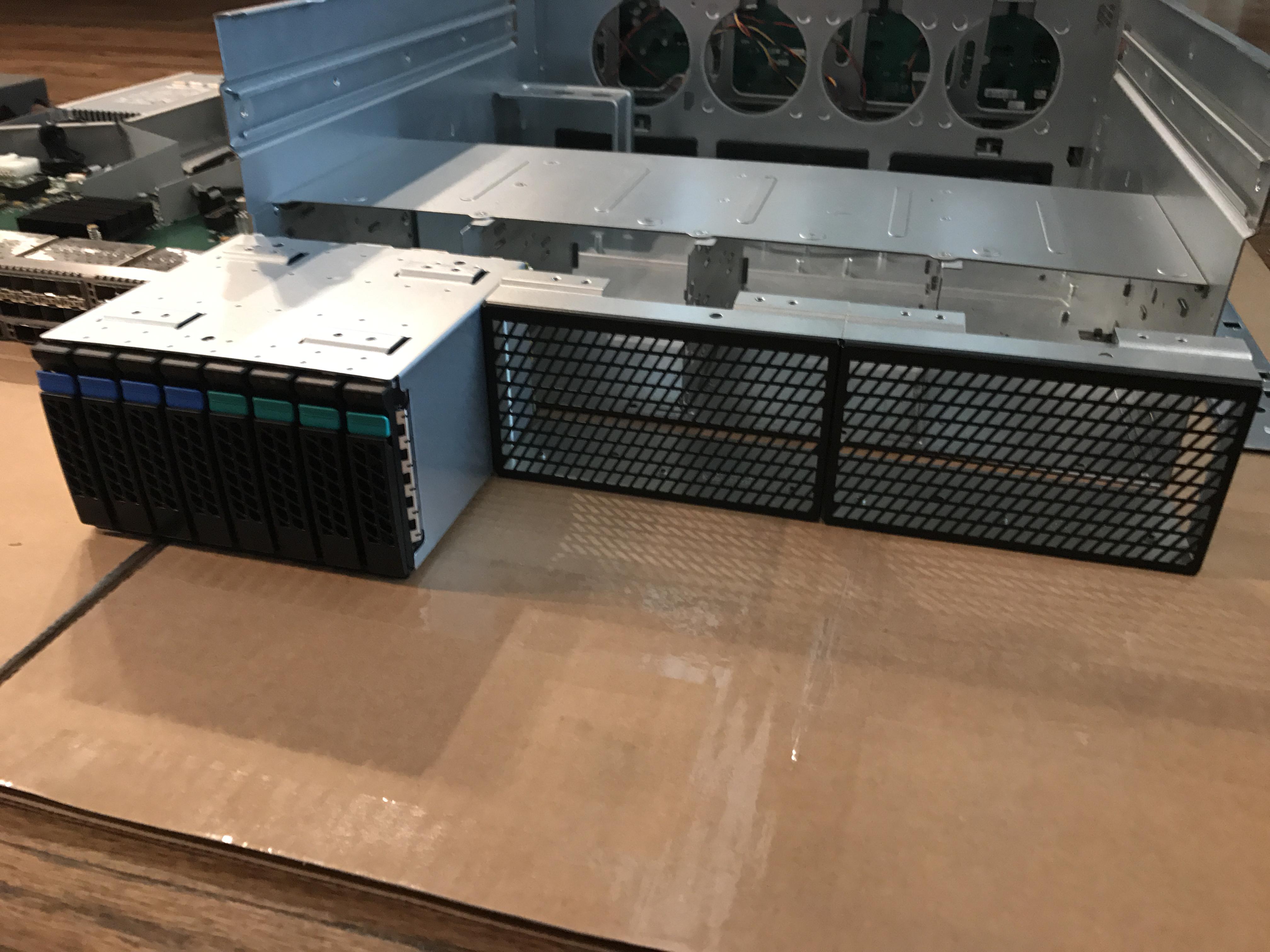 This would obviously be on a bare chassis (which is just metal) and would be more to get the caddy recepticle configuration right when moving from 4 rows of horizontal 3.5" trays to two rows of vertical 2.5" trays.
